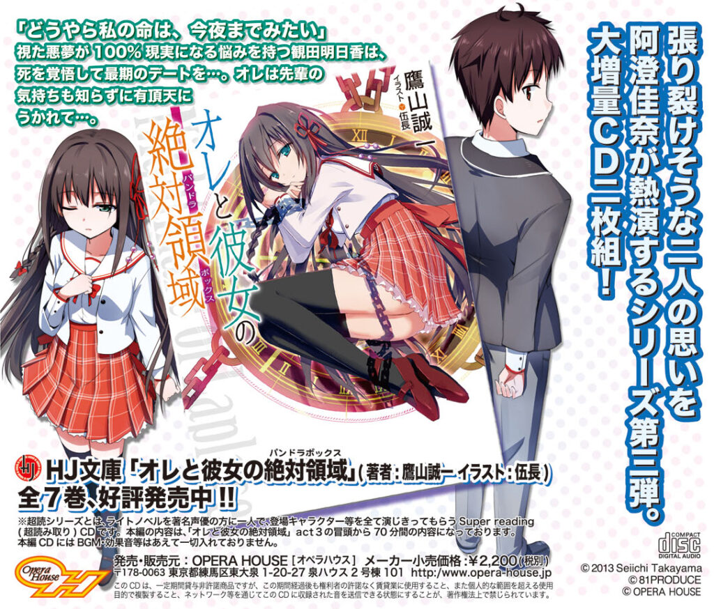 HJ文庫「 俺と彼女の絶対領域 」の小説を阿澄佳奈が、感情を込めて朗読。